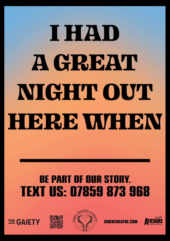 Ashley Nicholson, Robbie Gordon, Jack Nurse, Lauren Mitchell, Kerry Porter, Sally Rennie, Steven Paton, the team at The Gaiety, AMD Studios, and our anonymous TXT ME campaign responders